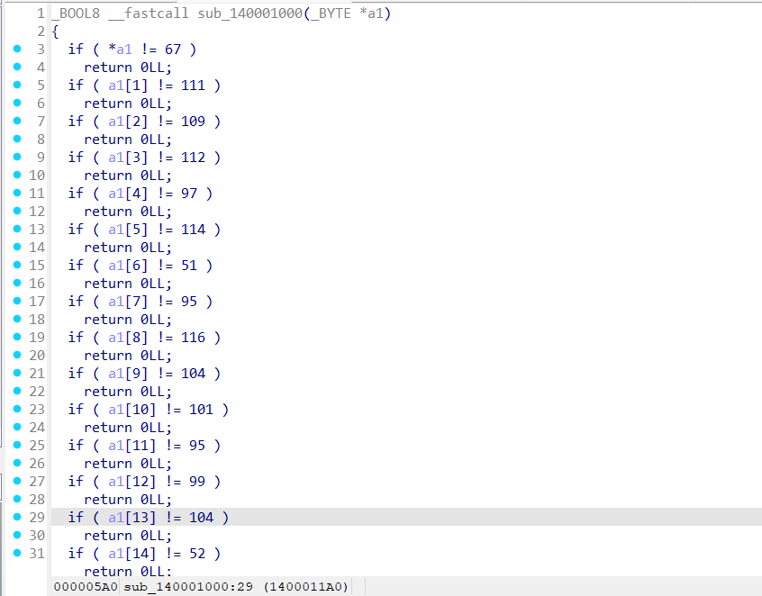 이 조건문들을 해석해보면 1바이트 단위로 값을 비교해주고 있습니다.