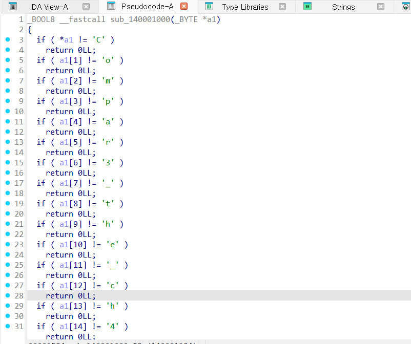 main함수를 디컴파일하면 이런 화면을 보실 수 있습니다.