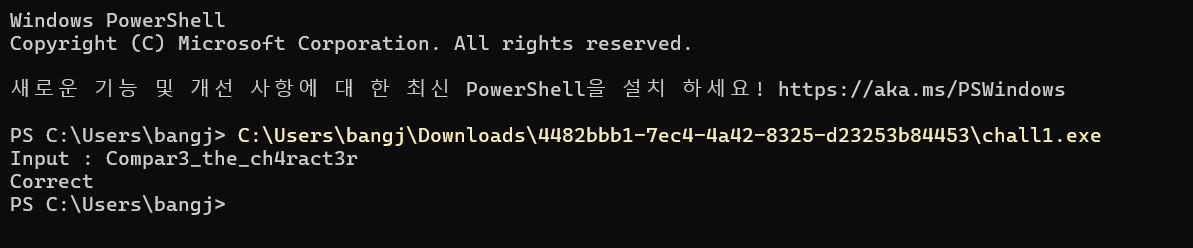 예상과 같이 Correct 가 출력됨을 알 수 있습니다.