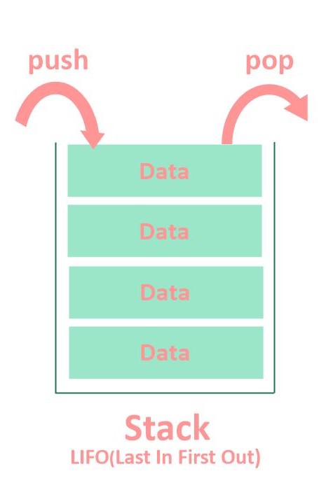 스택에 자료를 넣는 것을 push, 스택에서 데이터를 꺼내는 것을 pop이라고 합니다.